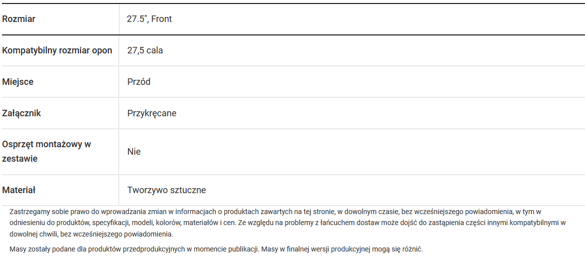 - Informacje na temat wszystkich powiązanych części montażowych można znaleźć na stronie produktu konkretnego modelu roweru