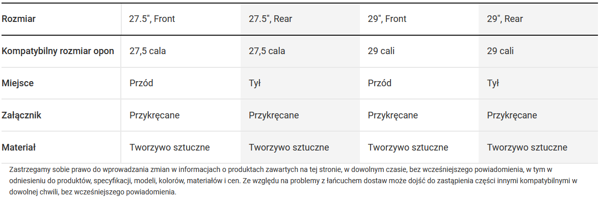 - Tylne błotniki nie zawierają rozpórek, ponieważ do montażu wymagają specjalnego tylnego bagażnika Powerfly HT