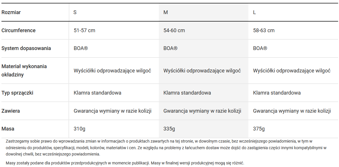 - Gwarancja wymiany w razie kolizji zapewnia darmową wymianę w ciągu pierwszego roku od zakupu w razie uszkodzenia kasku wskutek kolizji