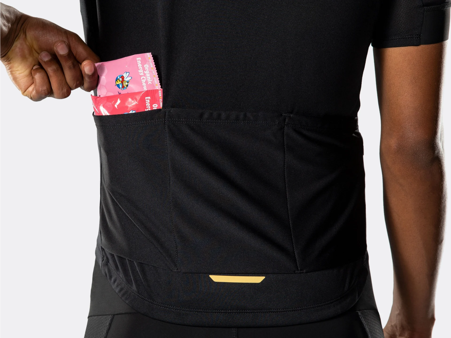 - Kolarski krój z dłuższym tyłem chroni plecy w pozycjach przybieranych podczas jazdy