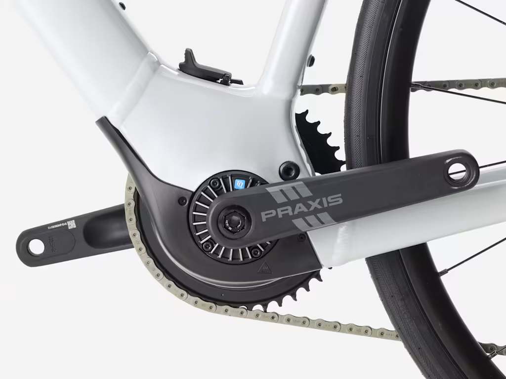 Domane+ ALR 5 to aluminiowy rower elektryczny z płynnie, cicho i naturalnie pracującym wspomaganiem. Silnik TQ HPR60 zapewnia mocne wsparcie podczas długich wypraw i wielkich podjazdów, a 12-biegowy napęd SRAM Apex gwarantuje precyzyjną i niezawodną zmianę biegów.
