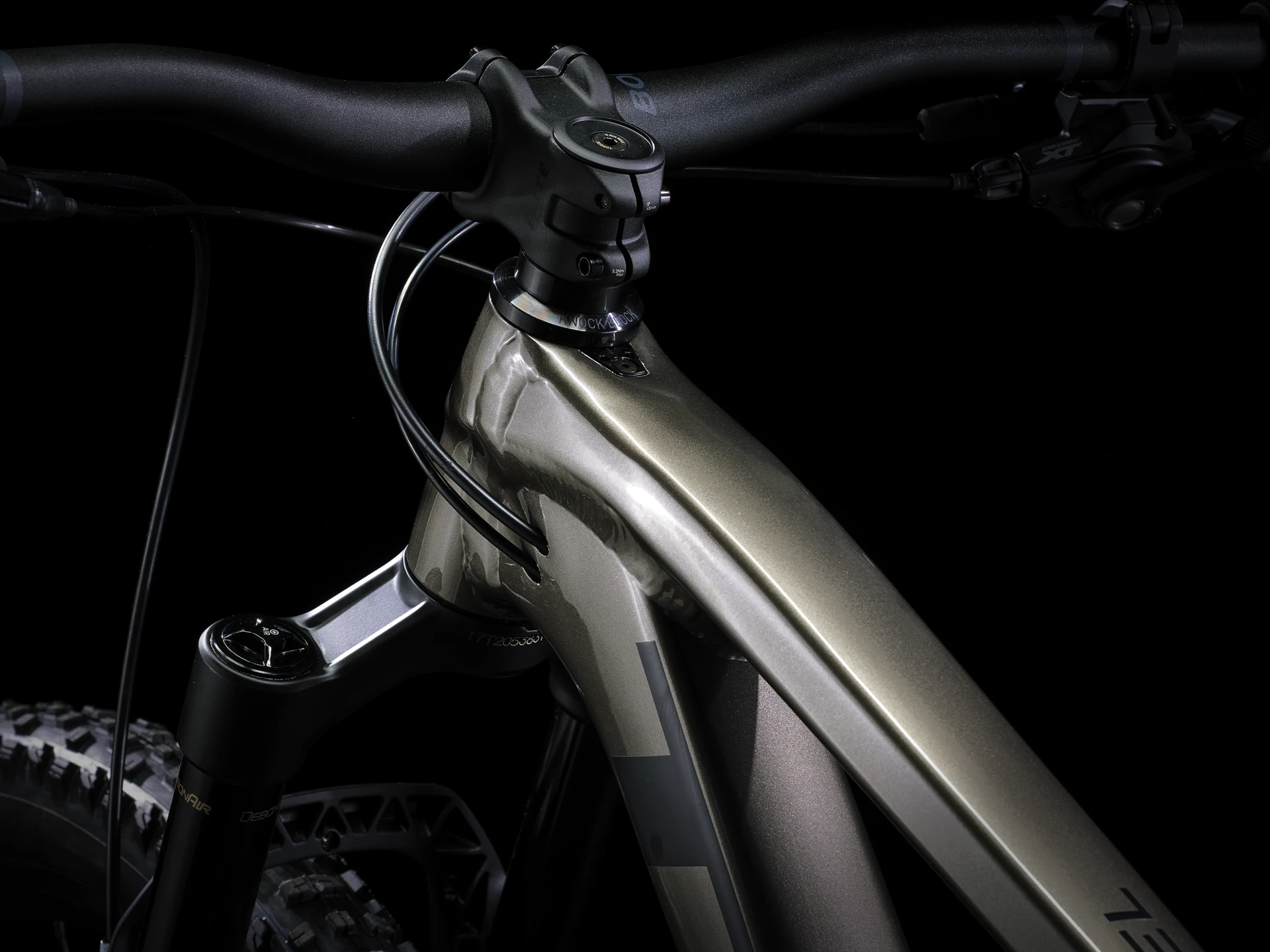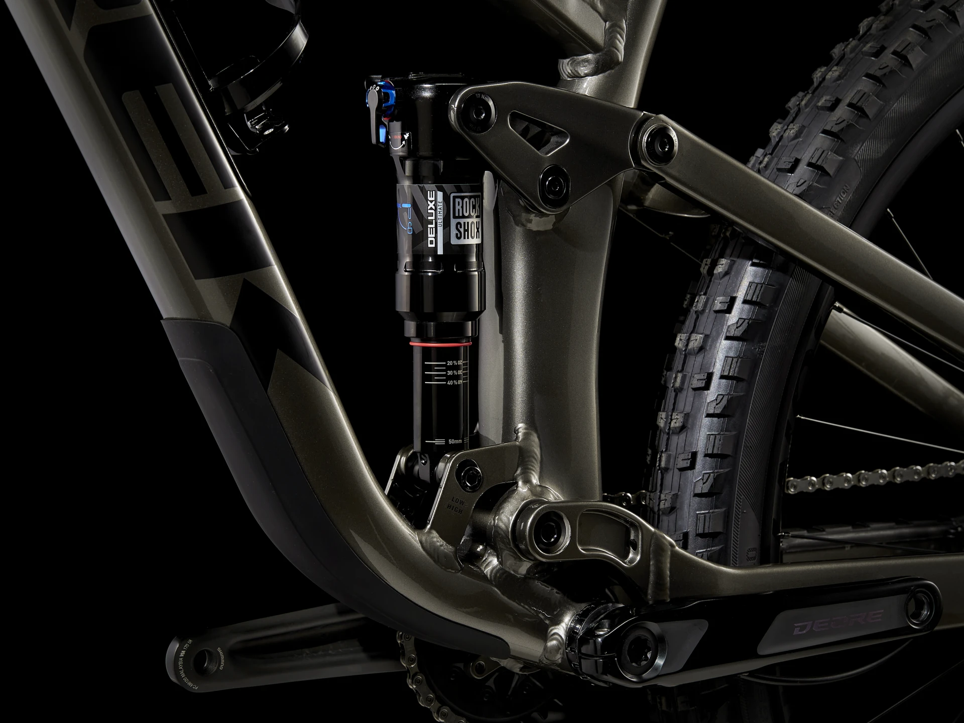 Lekka aluminiowa rama z wewnętrznym schowkiem, widelec RockShox Pike o skoku 130 mm z miękką sprężyną DebonAir, amortyzator RockShox Deluxe Ultimate RCT o skoku 120 mm i układ napędowy Shimano XT. Są też 4-tłoczkowe hamulce dla pewnych zjazdów, koła Bontrager Line Comp 30 przystosowane do bezdętkowych kół, w komplecie z uszczelniaczem i regulowany wspornik siodła Bontrager Line.