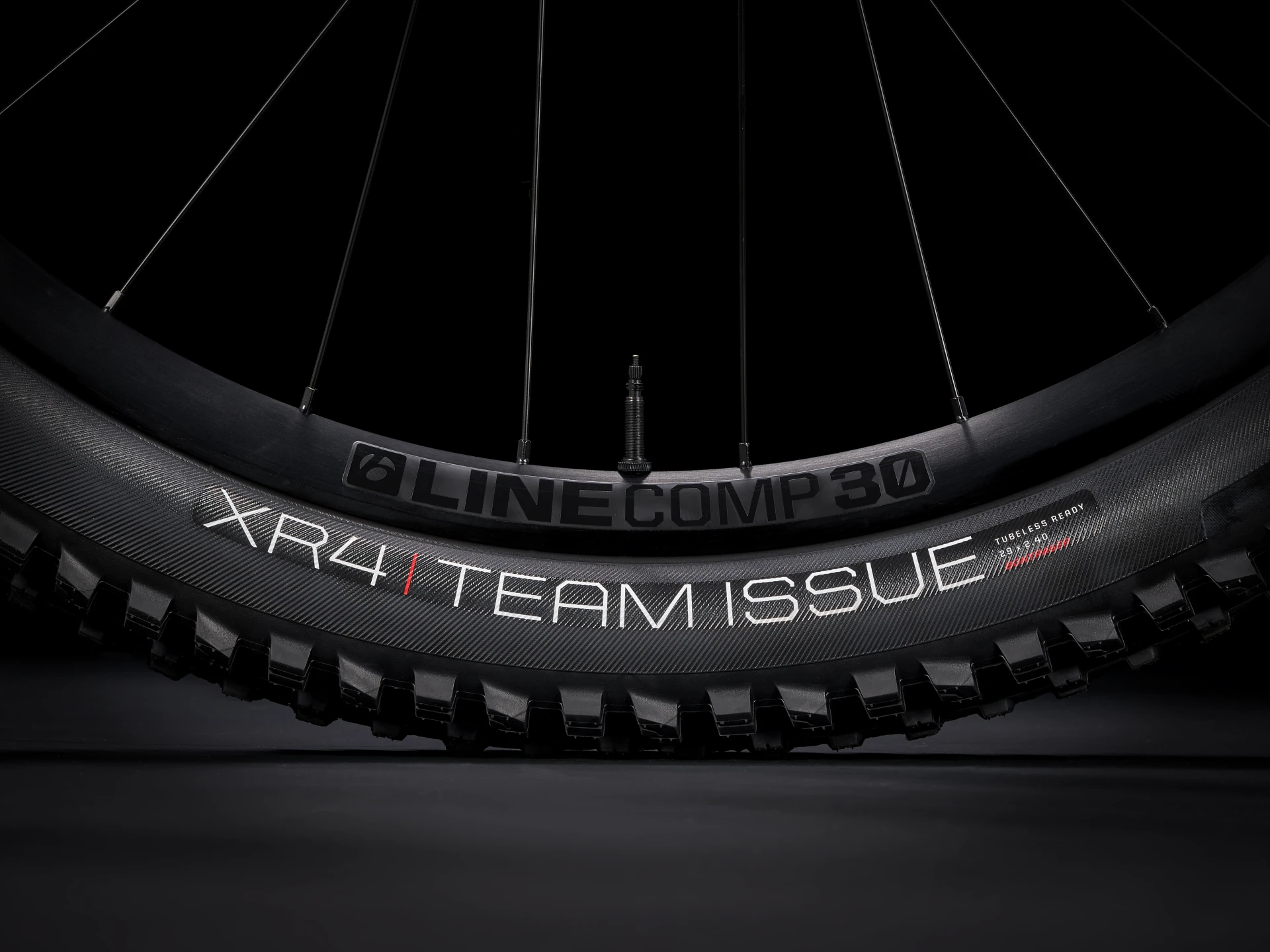 Opony:   Bontrager XR4 Team Issue, przystosowana do zastosowania bezdętkowego Tubeless Ready, ściany boczne Inner Strength, stopka z aramidu, 120 tpi, 29 x 2,40”