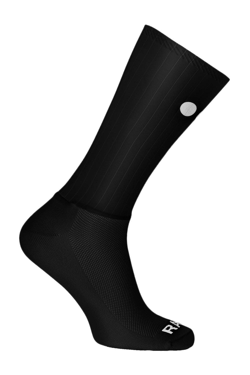 Wysokie skarpety o aerodynamicznym kroju. Górna część wykonana została z elastycznego materiału, zakończonego cienkimi paskami silikonu. Funkcjonalny i chłonny materiał w dolnej części wokół stopy dobrze odprowadza wilgoć i jest szybkoschnący. Posiada świetne właściwości oddychające i antybakteryjne.