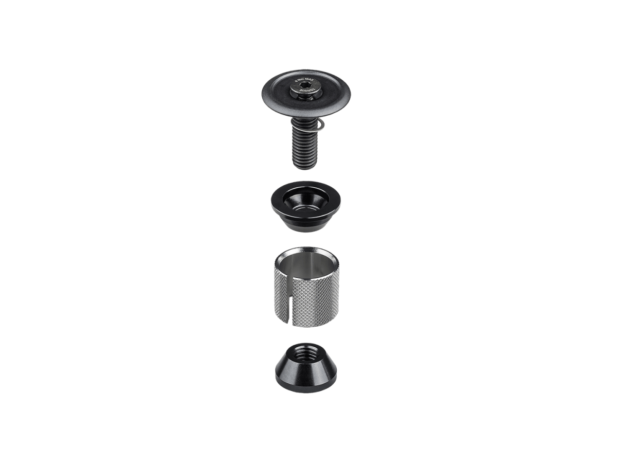 Ten korek rozporowy można łatwo zamontować we wszystkich rurach sterowych z włókna węglowego Trek 1-1/8”.
