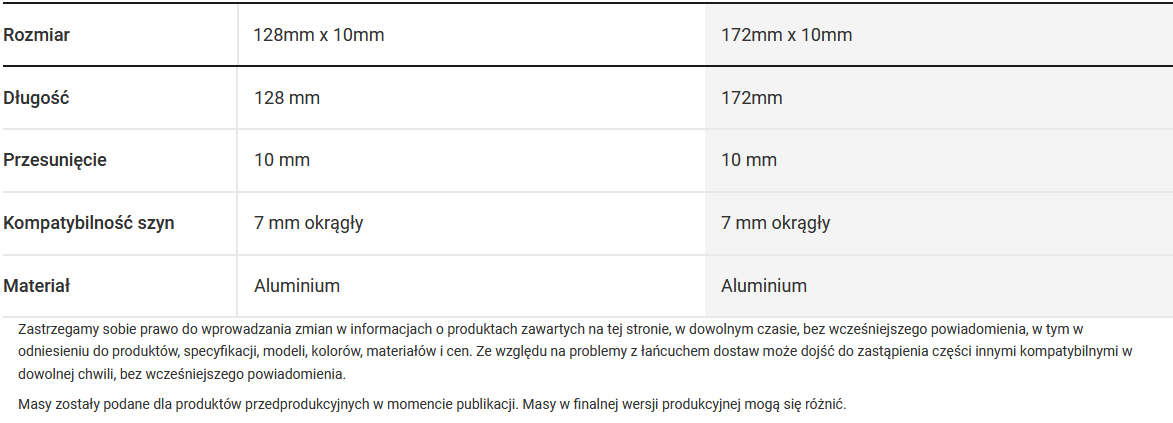 | Materiał | Aluminowy |